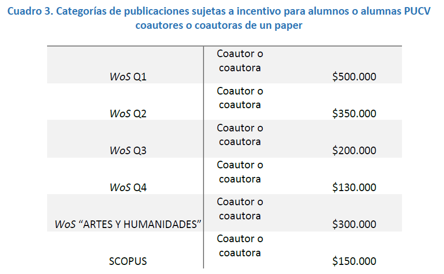 coautores o coautoras de una publicación que ya posee incentivo a un investigador PUCV, se