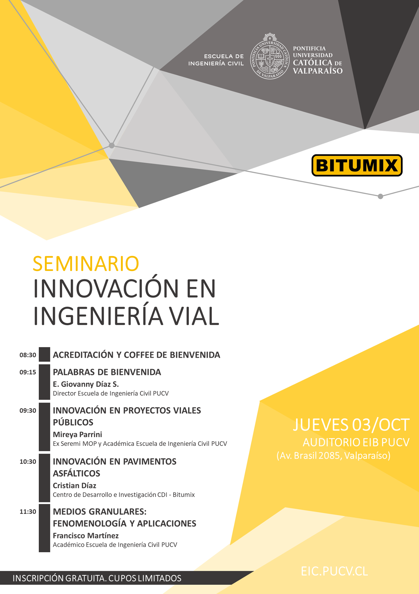 La Escuela de Ingeniería Civil PUCV organiza diversos seminarios, charlas y workshop que buscan conectarse con la comunidad y con la industria, generando flujos bidireccionales de conocimiento y manteniendo actualizados a los estudiantes de las novedades del rubro y los descubrimientos de punta.