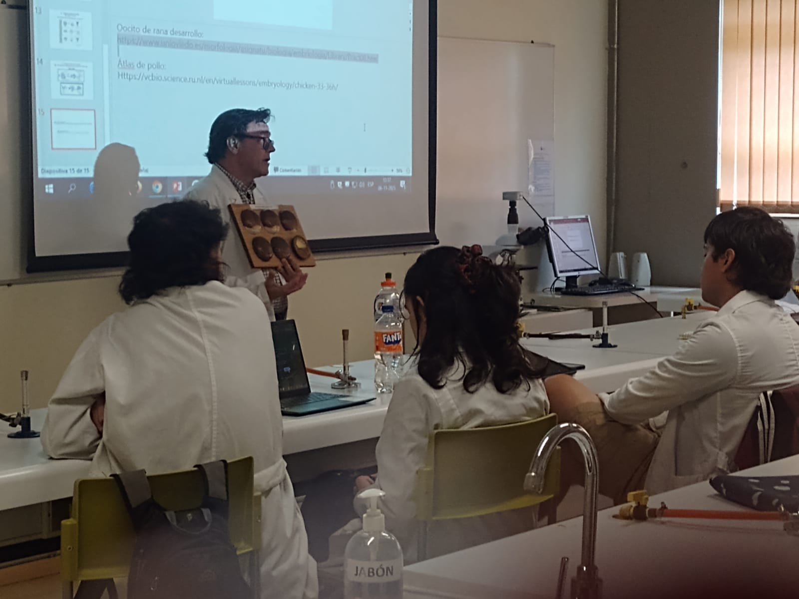 Junto a la charla realizada por el Dr. Abadía, el académico estuvo presente en las clases de cátedra y laboratorio del curso BIO 349, interactuando con los estudiantes y resolviendo sus dudas.