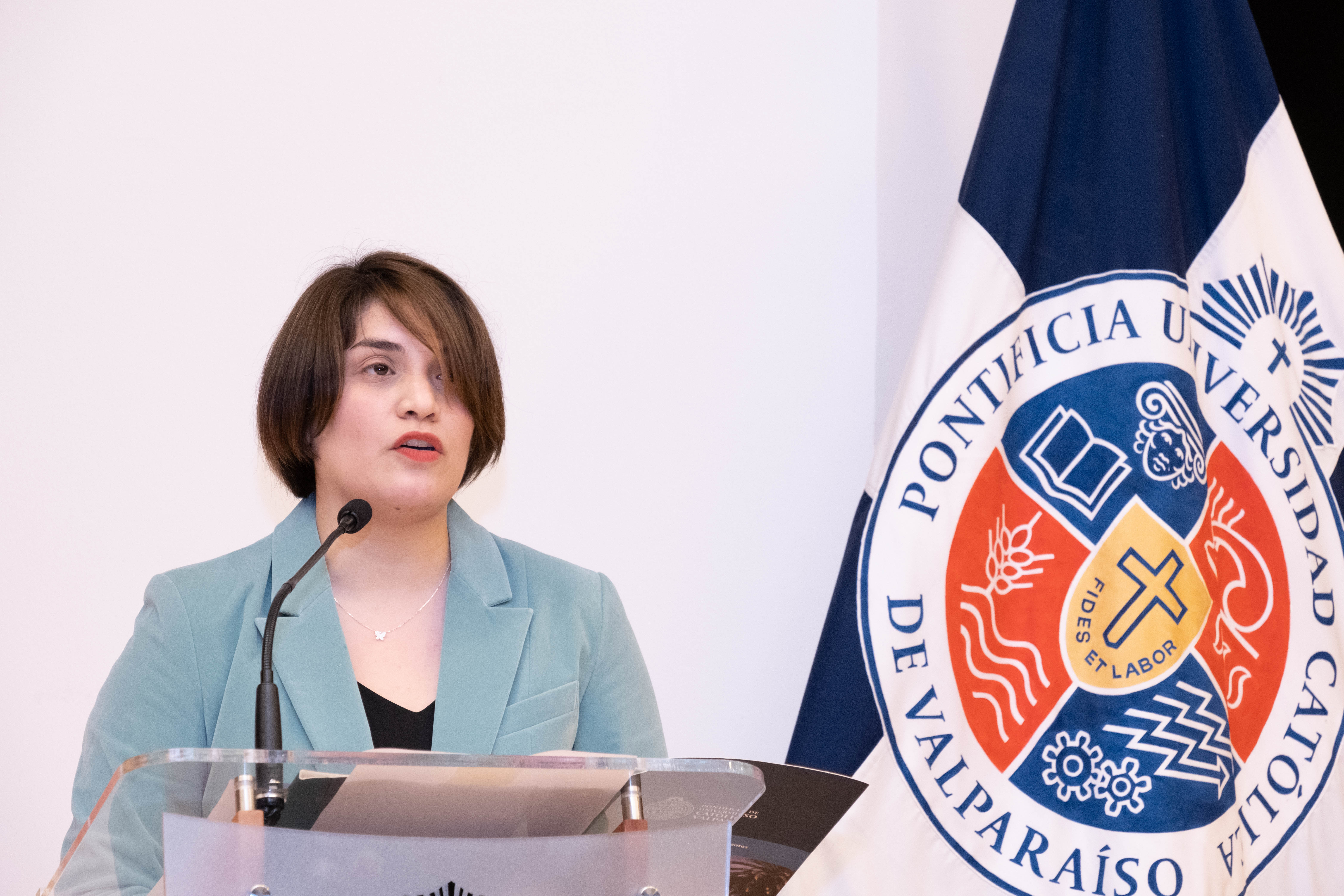 El primer premio se entregó a la egresada Giannina Corsi, por representar y demostrar su compromiso con el Instituto y la comunidad universitaria, durante sus años de estudio y en torno al sello valórico inculcado por la PUCV.