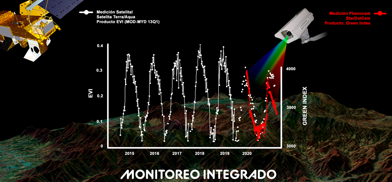 In Chile, the research team leading this proposal has taken some steps towards the implementation of aChilean phenological monitoring system. In close cooperation with the Forest Service (Conaf),we have developed monitoring systems in four units of the National System of Protected Areas, SNASPE. These platforms, based on 20-years of NASA Moderate Resolution ImagingSpectroradiometer (MODIS) data, are automatically updated as soon as new MODIS data is acquired,providing timely and valuable information to assist Conaf management. To achieve this, we developed a flexible and robust algorithm, capable to process massive amounts of remote sensing data and to detectdisturbances with a probabilistic significance measure. This is especially relevant for policy makers, whocan decide based on statistically significant and spatially explicit evidence. The platform is complementedwith field Phenocams, which acquire pictures of relevant conservation targets from which indices (e.g. green index) are retrieved and used to validate remote sensing records). Conaf and also the Ministry of Environment have highlighted the relevance of having these systems at anational scale. Still, more research has to be done to test our approach for the wide spectrum of Chileanvegetation ecosystems, their phenological dynamics, the impact of different disturbances and theirresilience to single or multiple disturbances.