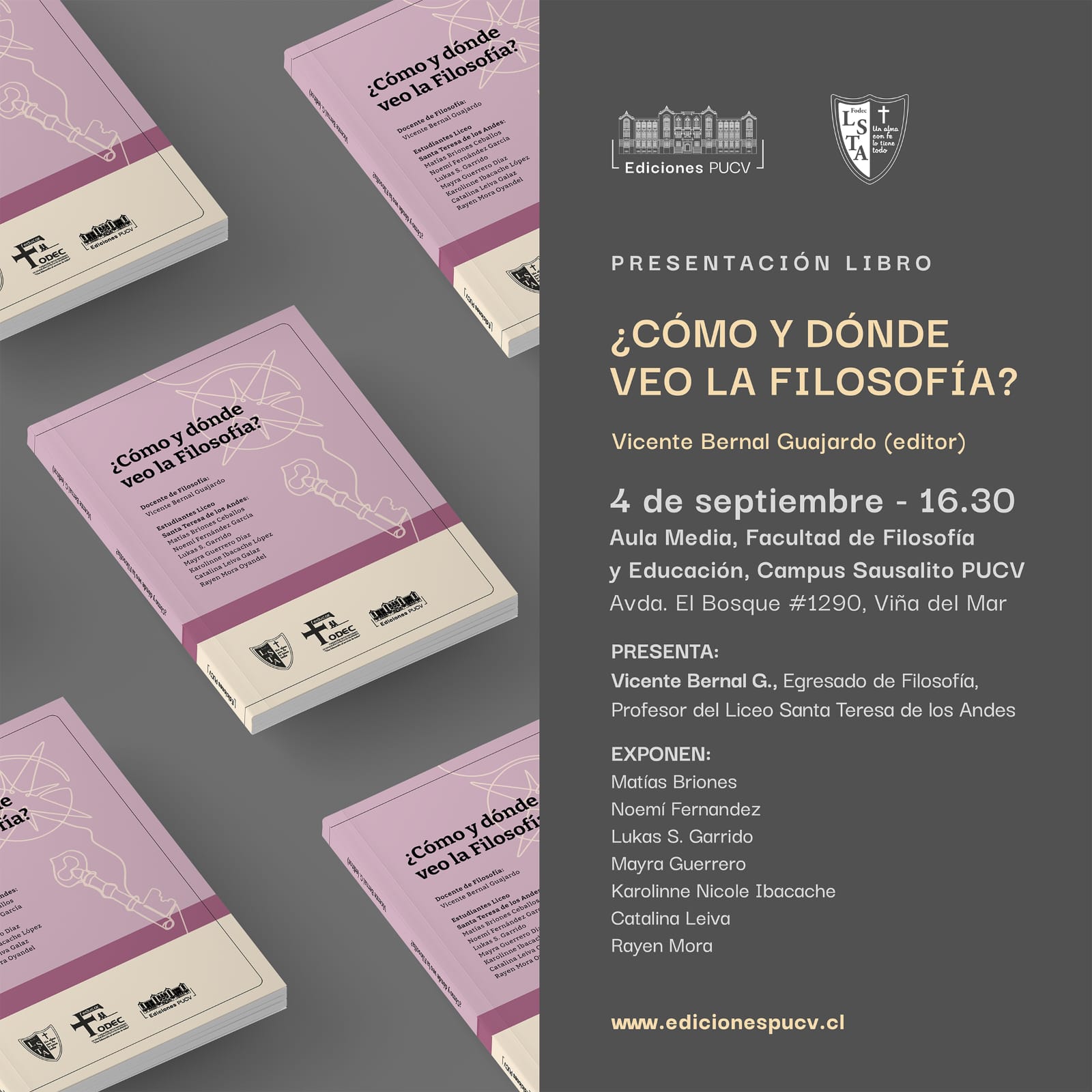 El Instituto de Filosofía PUCV tiene el agrado de invitar a la comunidad a la presentación del libro "¿Cómo y dónde veo la filosofía?", editado por Vicente Bernal Guajardo, egresado de nuestro programa de Pedagogía y Licenciatura en Filosofía.