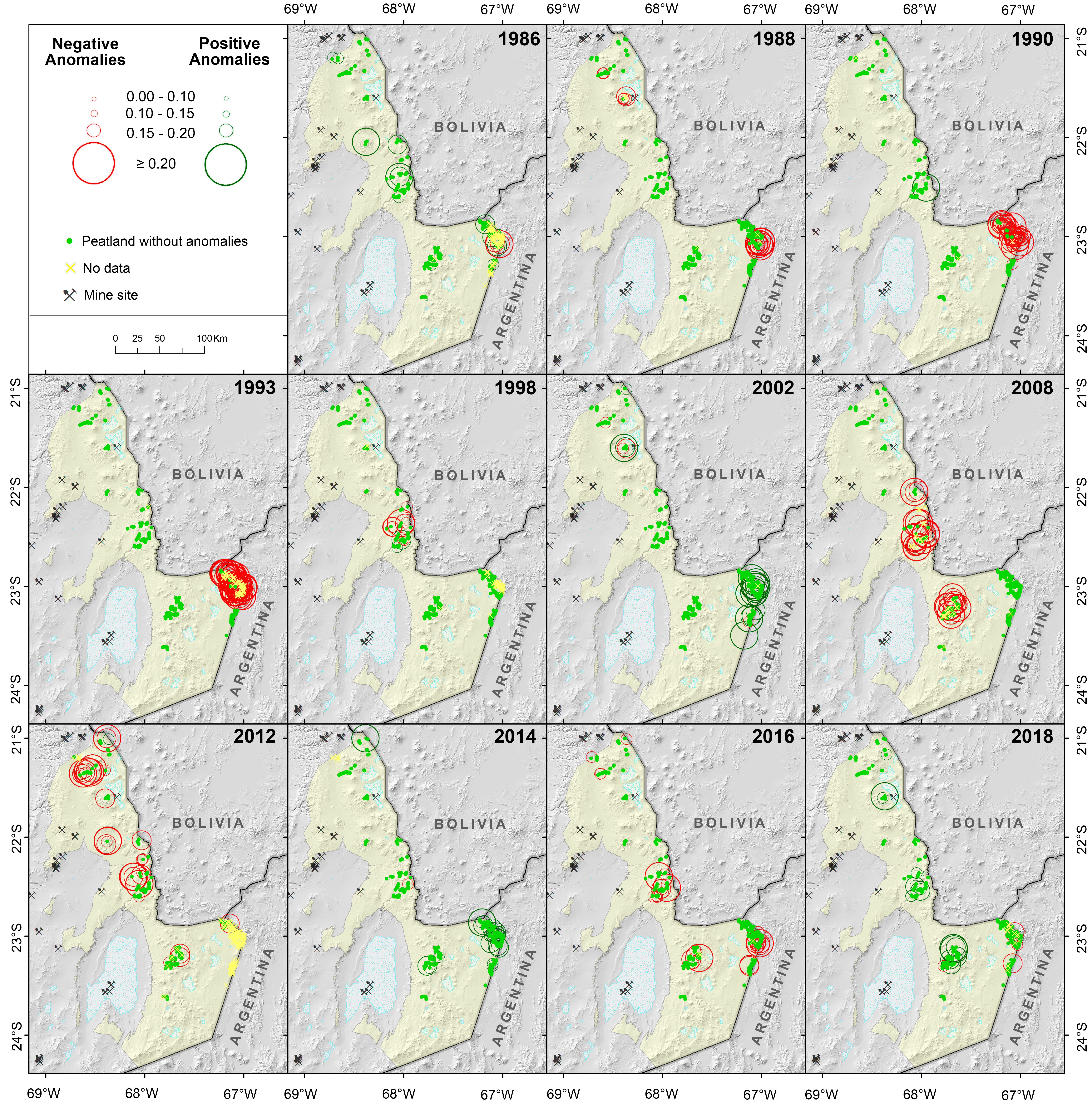 Mapas de estado de bofedales altiplanos en distintos años