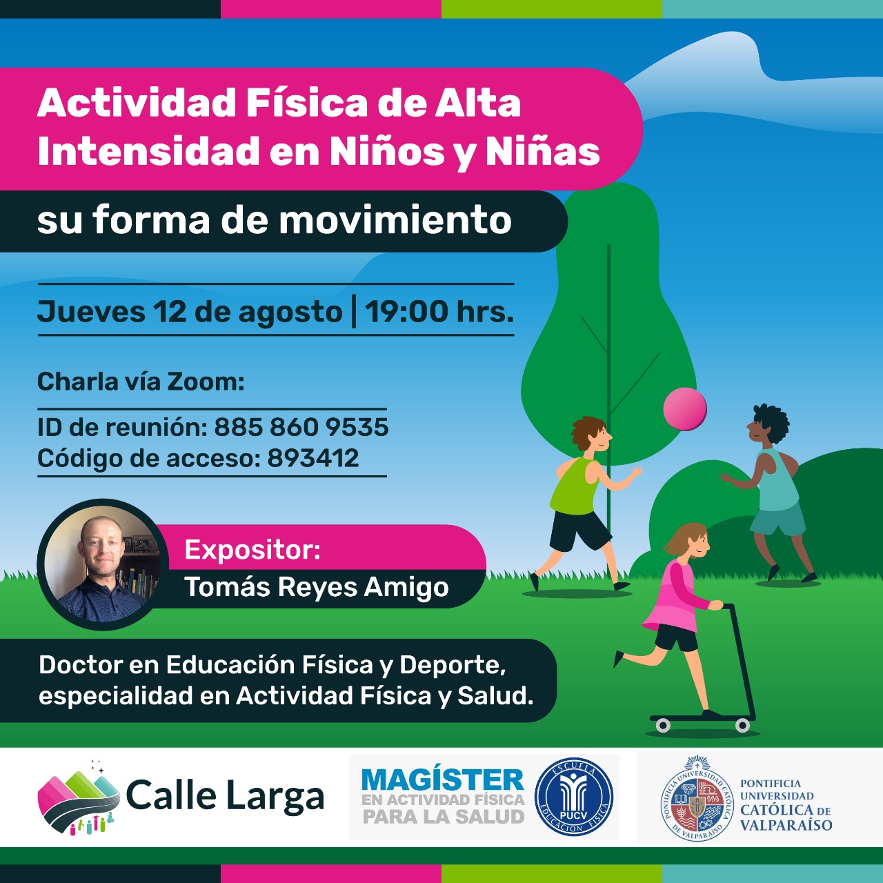 Invitamos a toda la comunidad a participar de la Charla "Actividad Física de alta intensidad en niños y niñas", la cual estará a cargo del profesor de nuestro programa de Magíster en Actividad Física y Salud de la PUCV, Tomas Reyes Amigo.