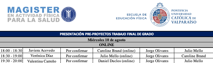 Usted está en: Portada | Magíster en Actividad Física para la Salud | Agenda Presentación de Pre-proyectos Grupo 4 Twittear subir volver
