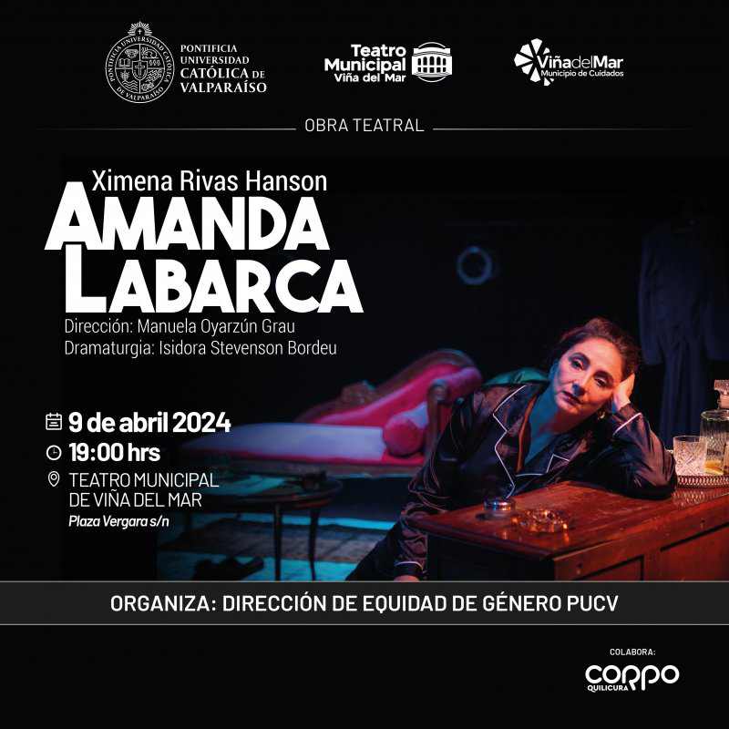 El monólogo teatral “Amanda Labarca”, protagonizado por la destacada actriz nacional Ximena Rivas, se presentará gratuitamente el próximo martes 9 de abril, a las 19 horas en el Teatro Municipal de Viña del Mar (Plaza Sucre s/n).