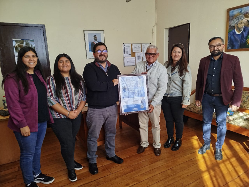 Descripción de imagen: Equipo de profesionales PACE PUCV junto a Juan Rodríguez Ampuero, director del Liceo Bicentenario de Excelencia Poeta Vicente Huidobro de Cartagena, perteneciente a las 21 comunidades PACE PUCV.