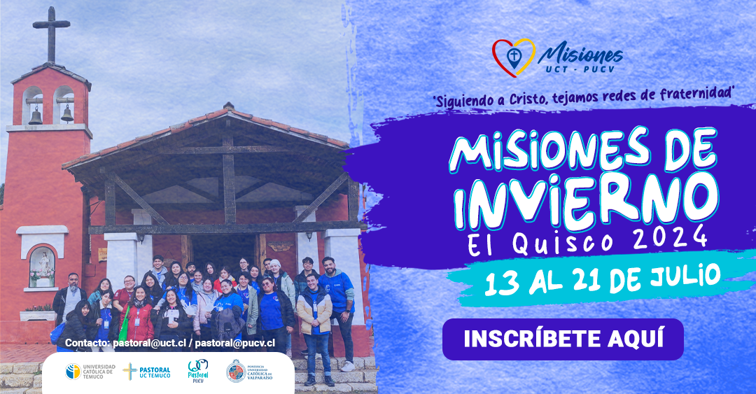 Las misiones de invierno surgen como un proyecto de la Pastoral Pontificia Universidad Católica de Valparaíso y la Pastoral de la Universidad Católica Temuco, en el marco de los principios y valores institucionales y la misión permanente de nuestras pastorales. Constituyen una instancia de discipulado en respuesta al llamado de entregar y compartir la Buena Nueva de Jesucristo con las diversas realidades sociales y eclesiales presentes en las zonas donde se encuentran nuestras universidades, atendiendo sus necesidades humanas y espirituales y promoviendo el encuentro personal y comunitario.