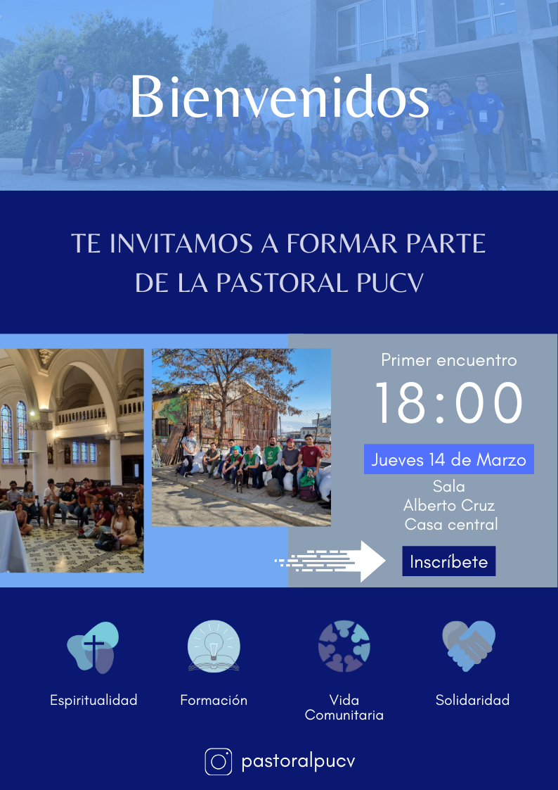 Usted está en: Portada | Pastoral PUCV Primer encuentro estudiantes Pastoral PUCV Primer encuentro estudiantes Pastoral PUCV Twittear subir volver