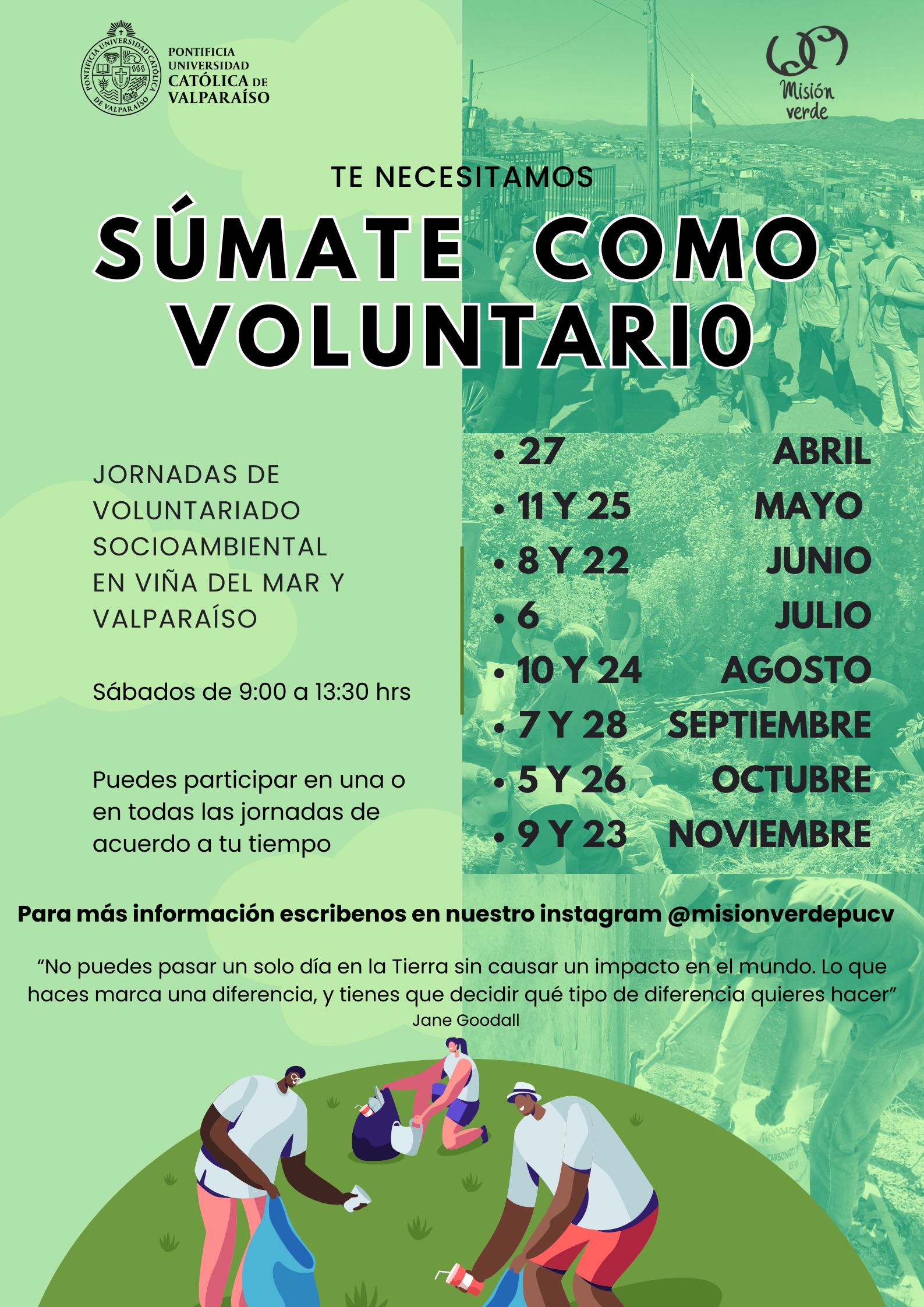 ¡Estimados estudiantes! Te dejamos las fechas de las intervenciones de Misión Verde programadas para este 2024. Escribenos en instagram @misionverdepucv o al correo (luis.alvarado@pucv.cl)