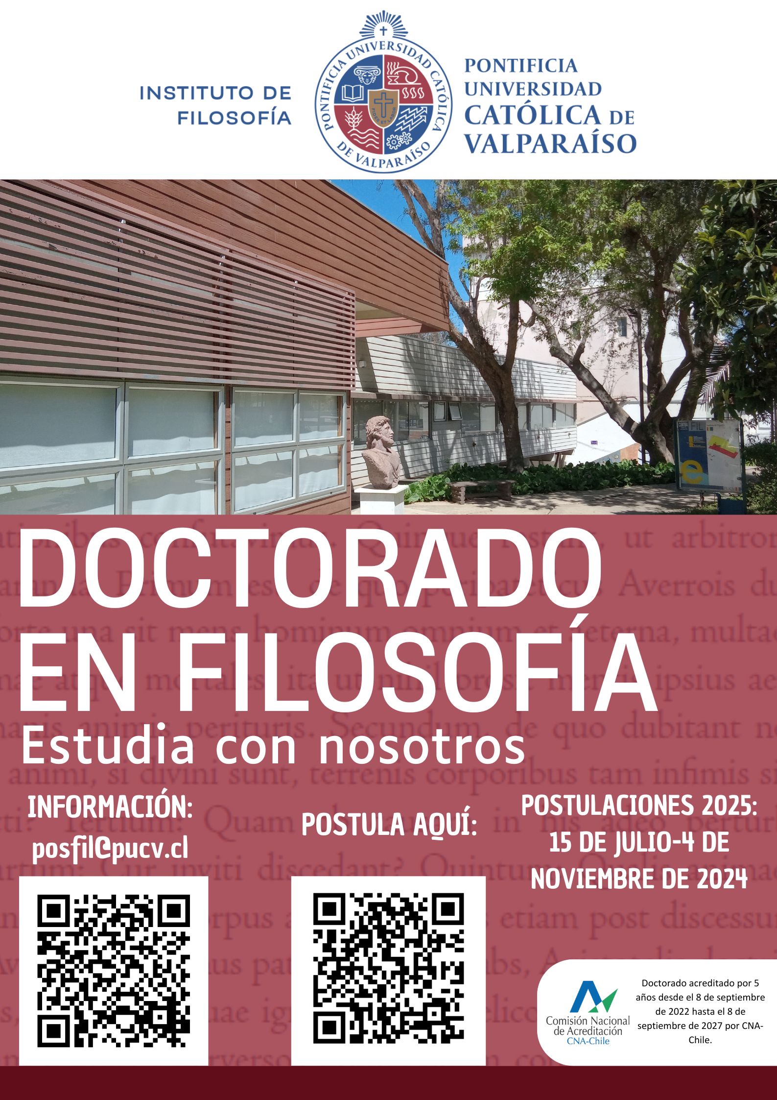 El Doctorado en Filosofía PUCV, prestigioso programa fundado en el año 1982, abre sus postulaciones para el 2025, y se mantiene como el único de su clase en la región de Valparaíso. El programa tiene como objetivo central formar investigadores de excelencia en la disciplina, que contribuyan fructíferamente al desarrollo de esta en instituciones de educación superior y/o centros de investigación.