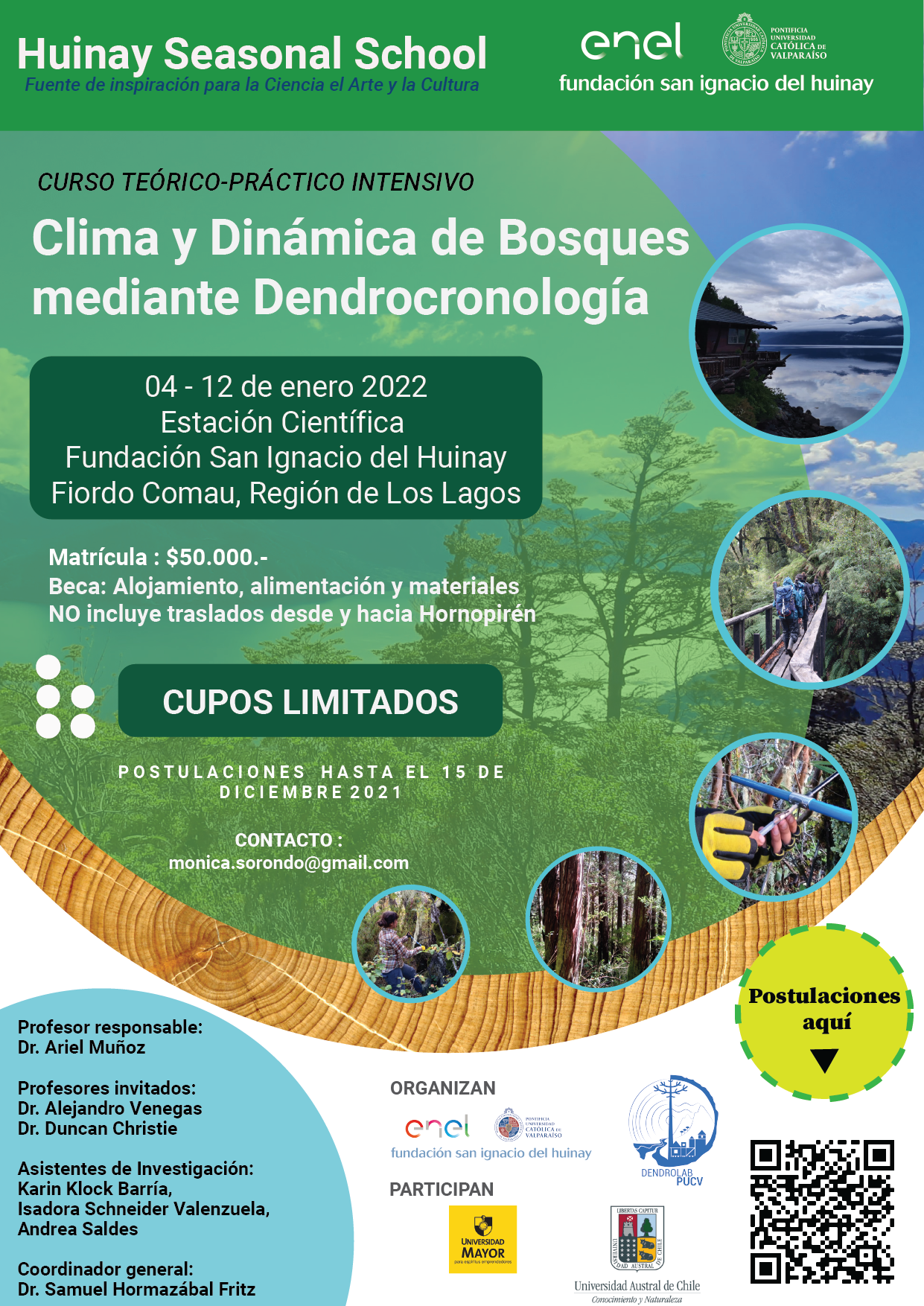 Para mayor información sobre el curso, te invitamos a revisar su sitio web oficial o enviar un correo electrónico a monica.sorondo@gmail.com o dendrolabpucv@gmail.com