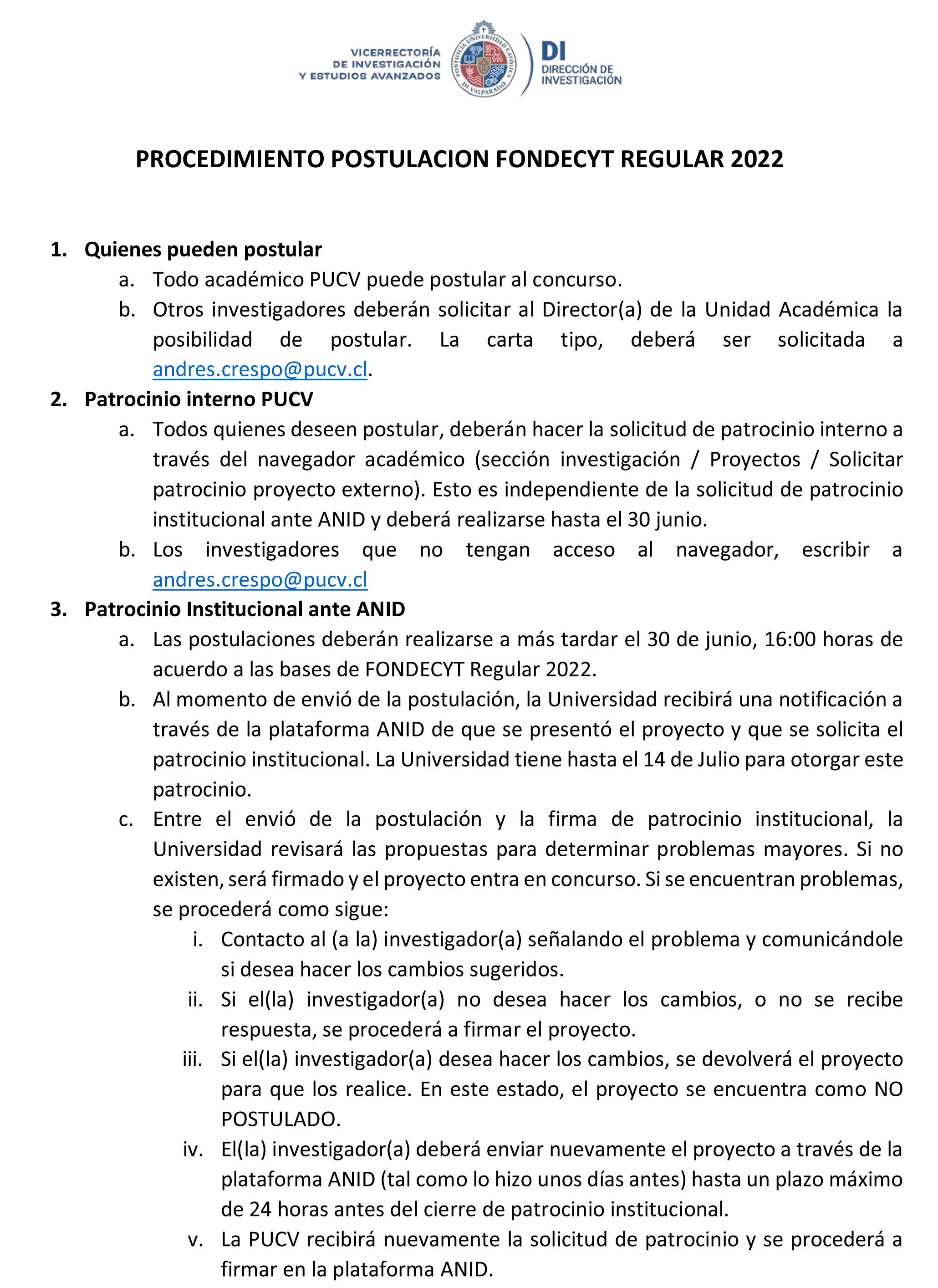 PROCEDIMIENTO POSTULACIÓN FONDECYT REGULAR 2022
