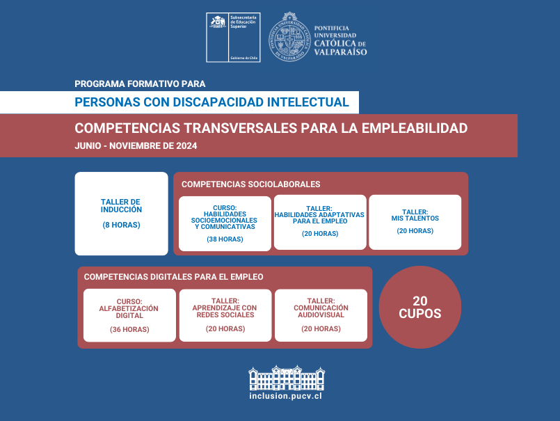 Programa orientado a personas adultas con alguna discapacidad intelectual o del desarrollo, de entre 18 y 30 años de edad. Podrán participar de cursos y talleres orientados principalmente al desarrollo de competencias transversales para la empleabilidad. Se abordarán habilidades socioemocionales y comunicativas, habilidades adaptativas para el empleo, desarrollo de talentos, alfabetización digital, aprendizaje con redes sociales, y comunicación audiovisual.