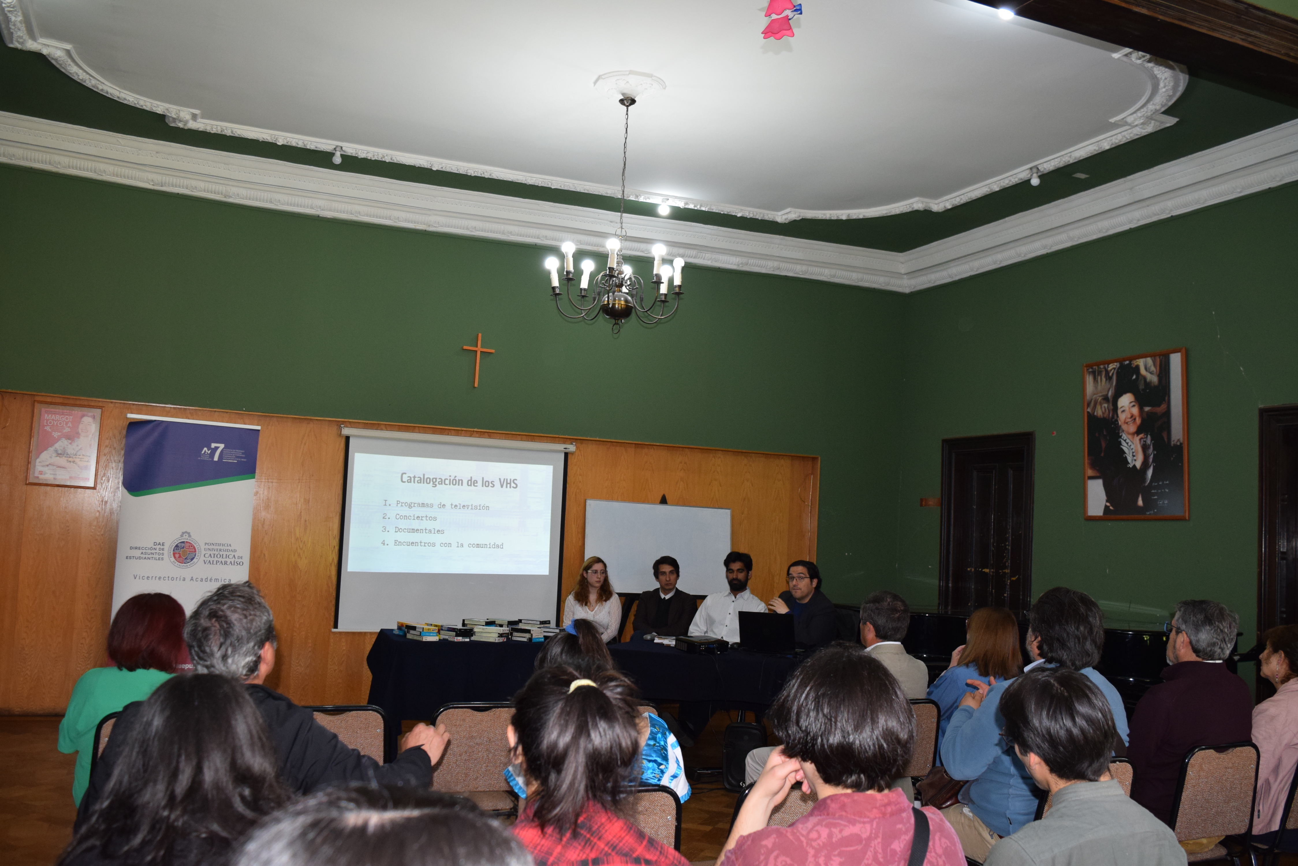 Este miércoles 22 de noviembre se realizó la presentación del proyecto denominado “Rescate y Conservación del Patrimonio Digital IMUS PUCV”, el cual fue conducido por un grupo de académicos y estudiantes del Instituto de Música de la PUCV. La actividad se llevó a cabo en la Sala Margot Loyola del Instituto y contó con la participación de profesores/as y alumno/as de la casa de estudios.