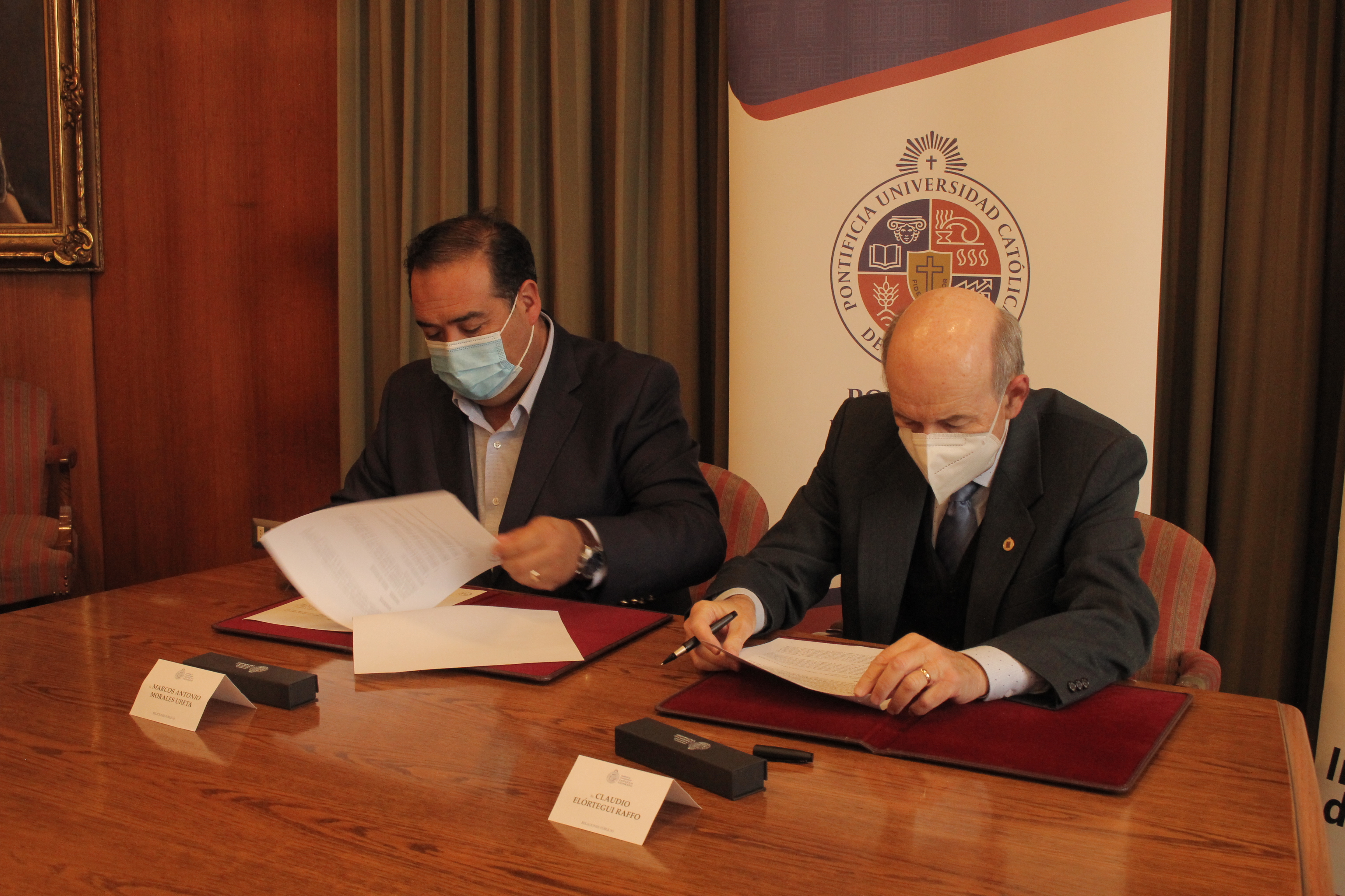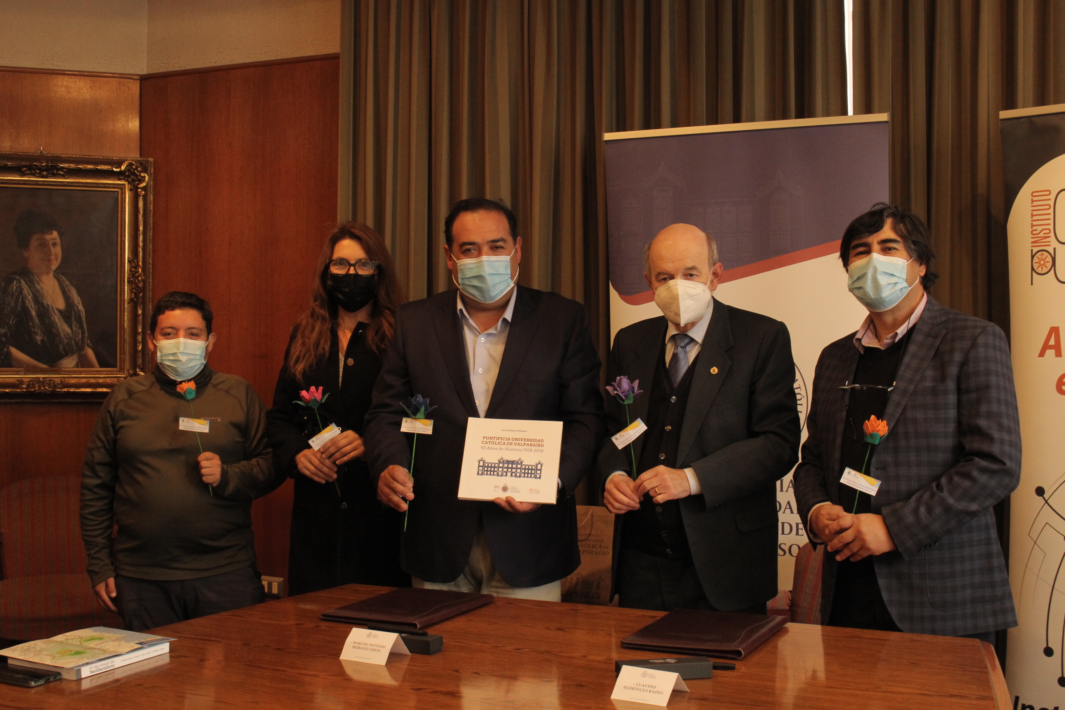 El viernes 8 de abril, en la Sala de Consejo Superior, se firmó el Convenio de Colaboración entre la Pontificia Universidad Católica de Valparaíso y la Ilustre Municipalidad de Puchuncaví, en el marco de generar espacios de intercambio profesional, académico y de vinculación con el medio.