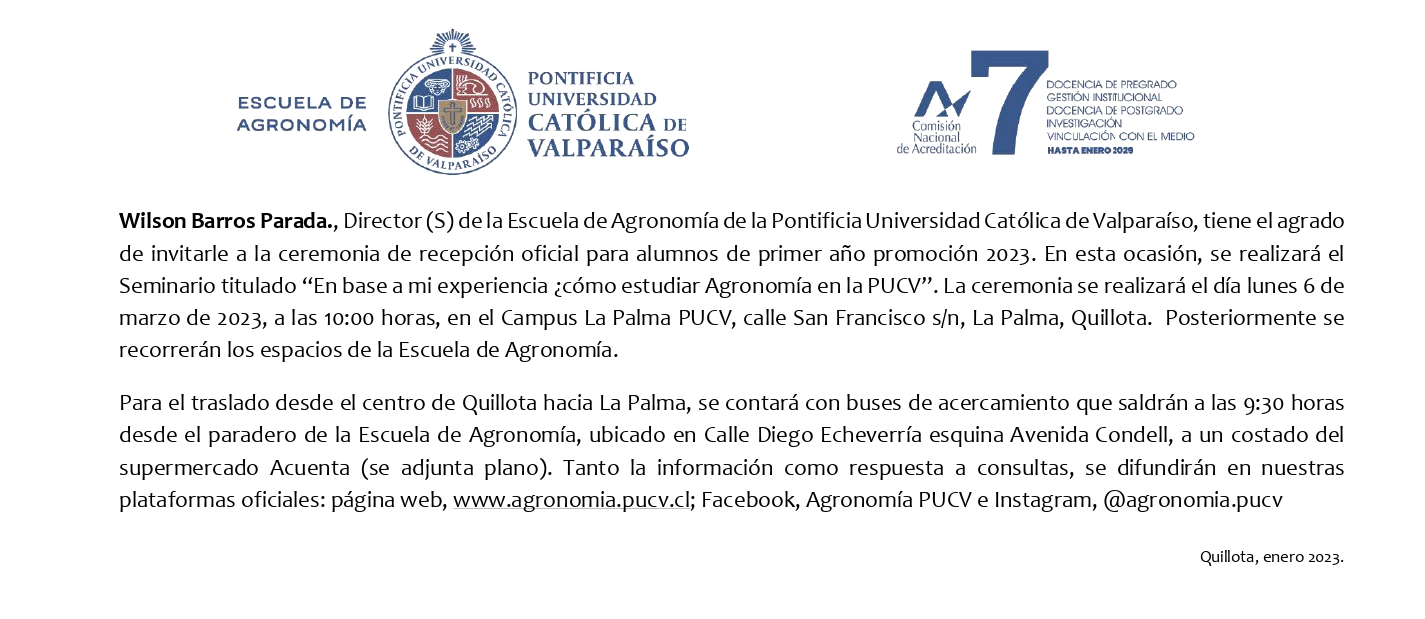 Usted está en: Portada | Escuela de Agronomía | Noticias Recepción estudiantes promoción 2023 26.01.2023 Twittear subir volver
