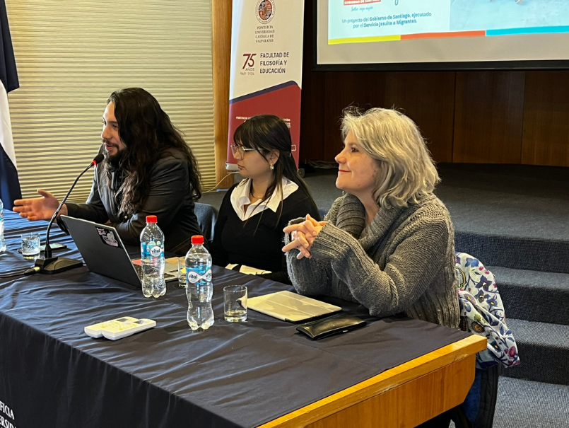 Los expositores fueron Juan Pablo González y Ayelén Moreno, ambos sociólogos del Servicio Jesuita a Migrantes, y Luisa Castaldi, académica de Psicología de la PUCV y directora de la Clínica Psicológica de la Universidad. Castaldi, abordando aspectos centrales de la migración desde un énfasis relacional, discutió conceptos como “enculturación” y “aculturación”. En su intervención, subrayó la importancia de considerar las pérdidas y posible trauma vinculados a la migración, como las características distintivas del duelo migratorio y su posible impacto en el bienestar y salud mental.