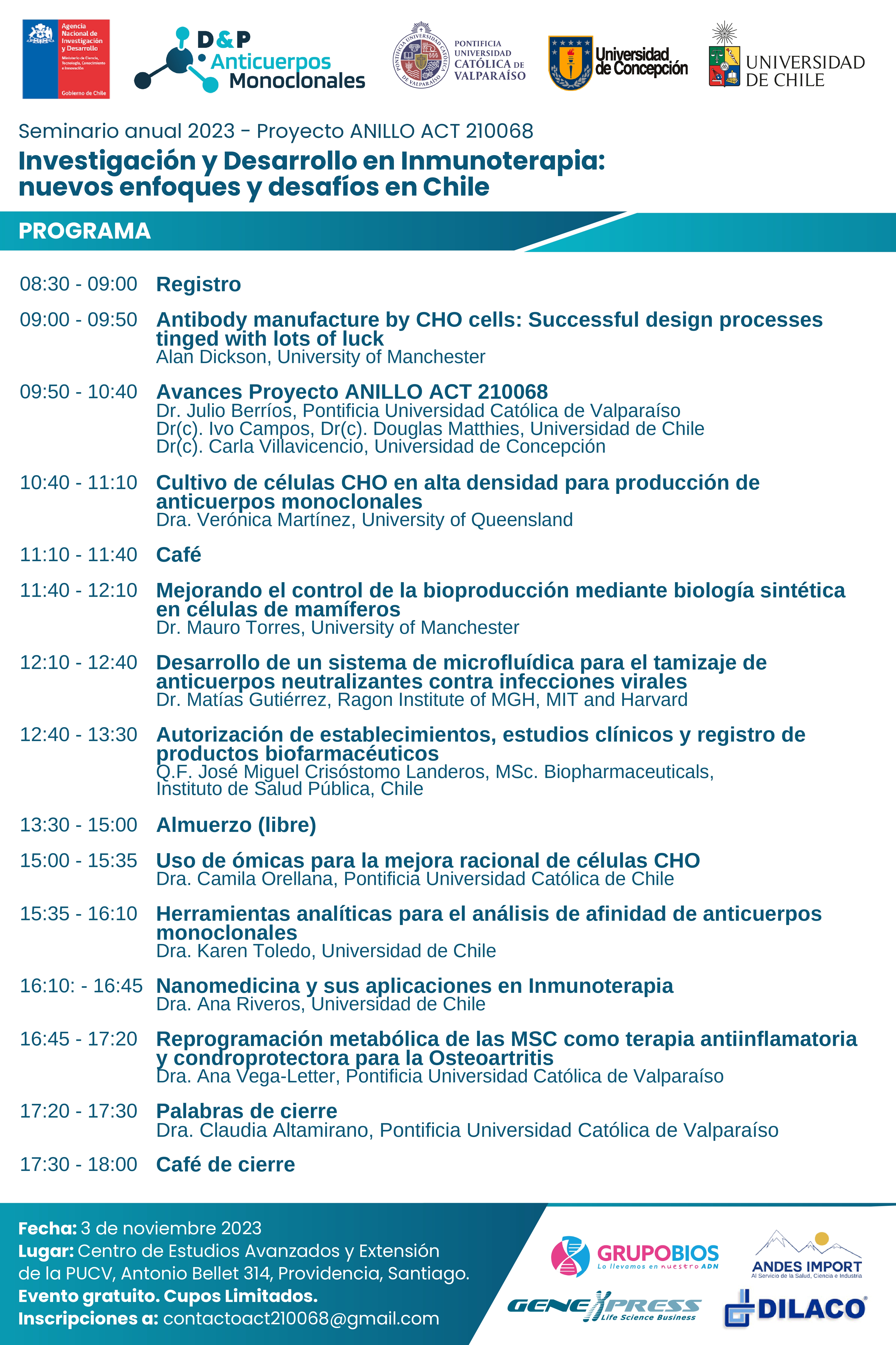 Invitación 2do Seminario del proyecto ANILLO ACT2100682: "Investigación y Desarrollo en Inmunoterapia nuevos enfoques y desafíos en Chile"