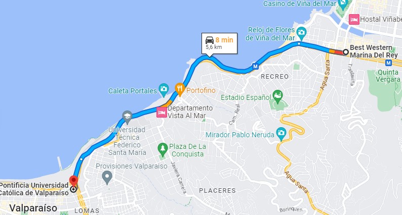 Revisa el recorrido desde el Hotel Marina del Rey a la Casa Central de la PUCV AQUÍ