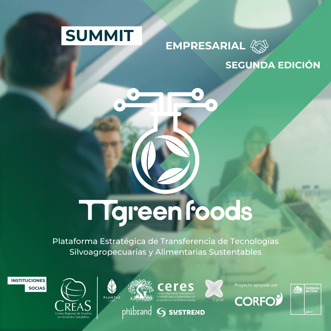 El Summit Empresarial del Programa Tecnológico de CORFO TT Green Foods, es un punto de encuentro para que investigadores, emprendedores y empresarios conozcan las líneas de acción del proyecto, iniciativa que apunta a promover la transferencia tecnológica de soluciones sustentables de I+D+i hacia el sector silvoagropecuario.