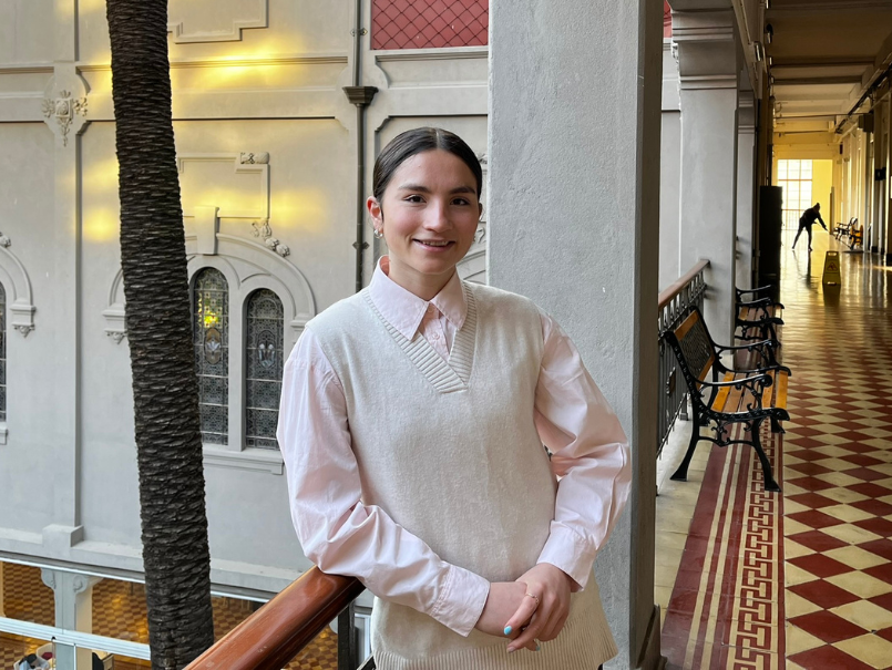 Descripción de imagen: Valentina Sule Dietz en pasillo de Casa Central PUCV.