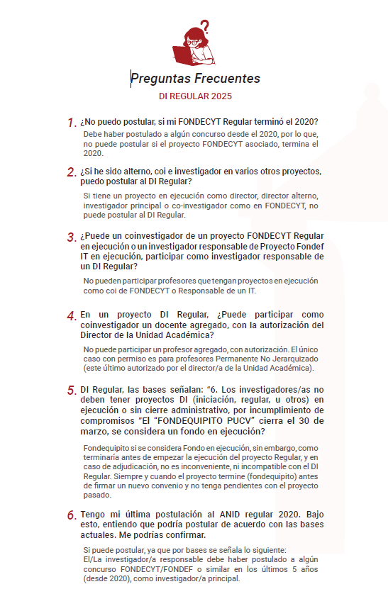 Usted está en: Portada | Vicerrectoría de Investigación, Creación e Innovación Preguntas frecuentes DI Regular 2025 Descargas Preguntas Frecuentes DI Regular 2025 Twittear subir volver