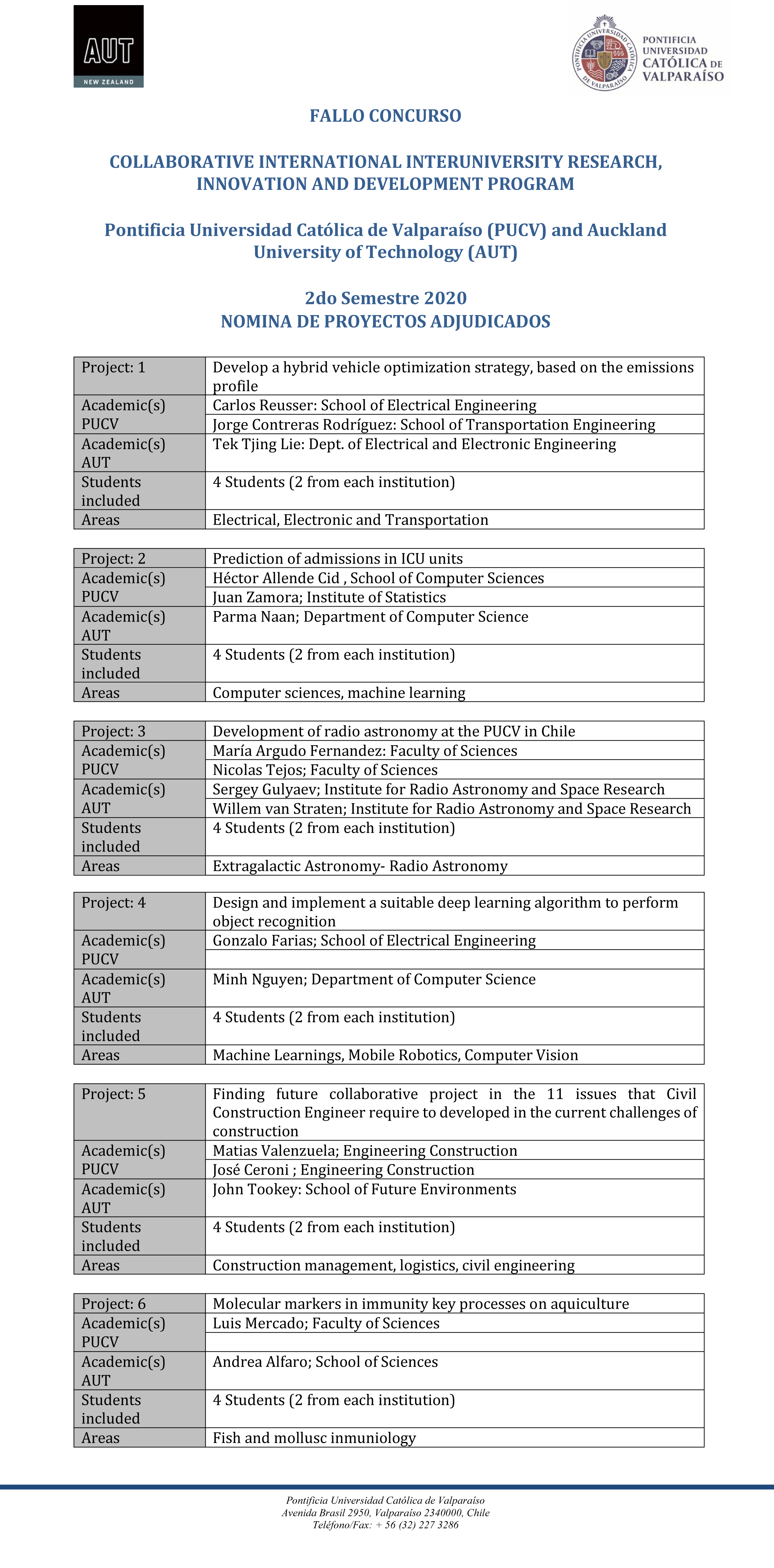 A continuación, el fallo que detalla los proyectos ganadores del concurso PUCV-AUT del presente año.